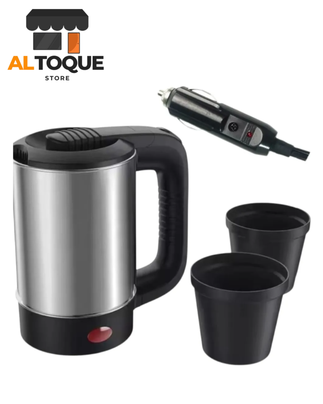Pava Eléctrica para Auto 12V con Capacidad de 500ml + 2 Vasos Incluidos