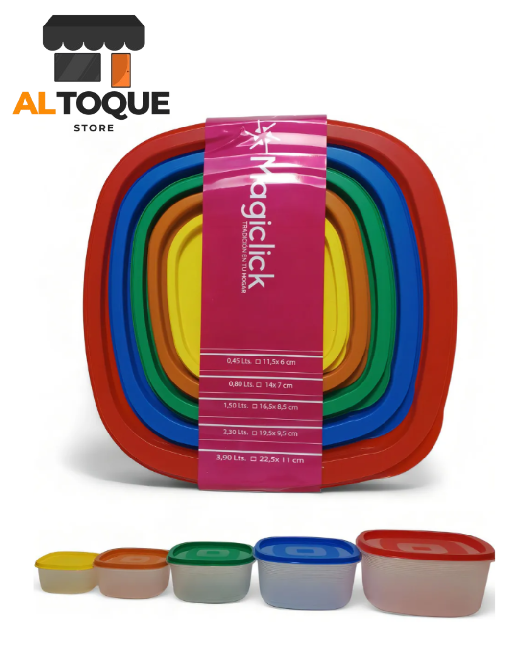 Fabricados con plástico de alta calidad y tapas que cierran perfectamente, son ideales para conservar alimentos, llevar viandas o guardar sobras en la heladera sin derrames ni olores.